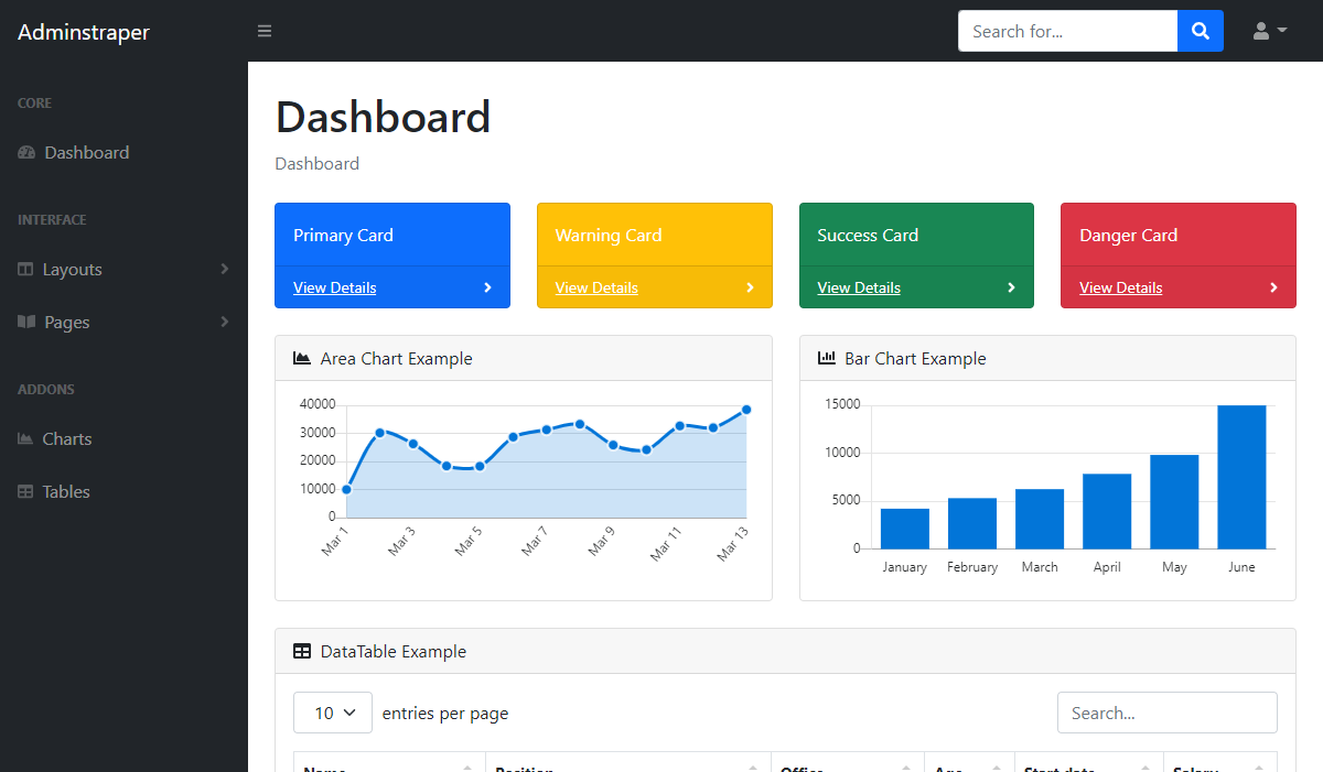 A Bootstrap 5 admin template with minimal custom styling and an advanced development environment - a perfect starter template for building web apps, dashboards, and admin panels.